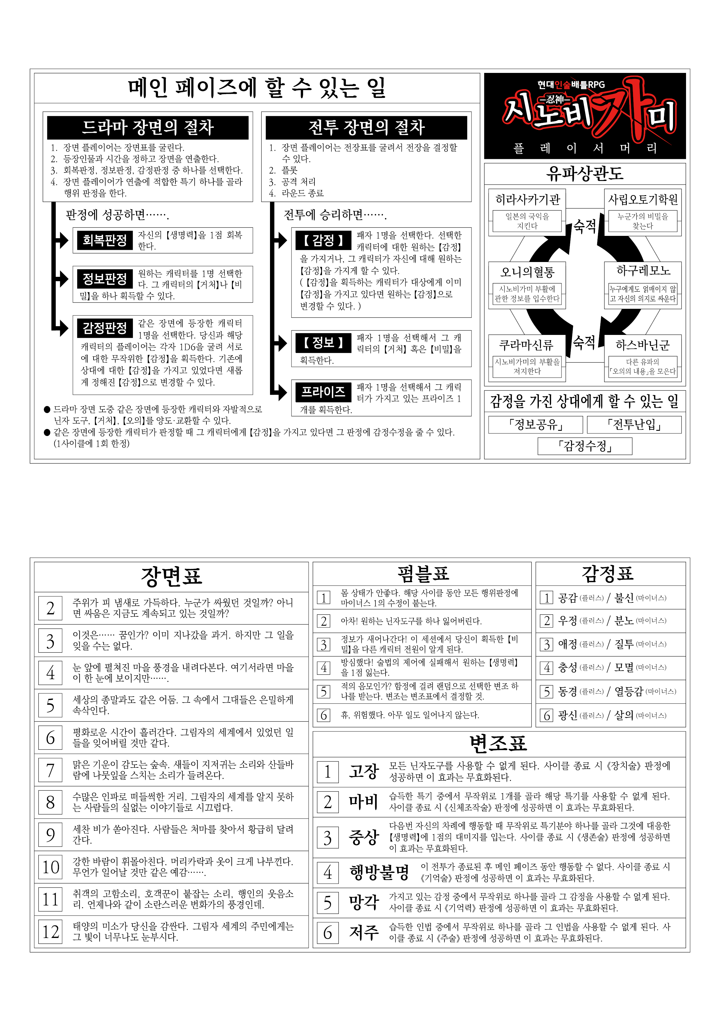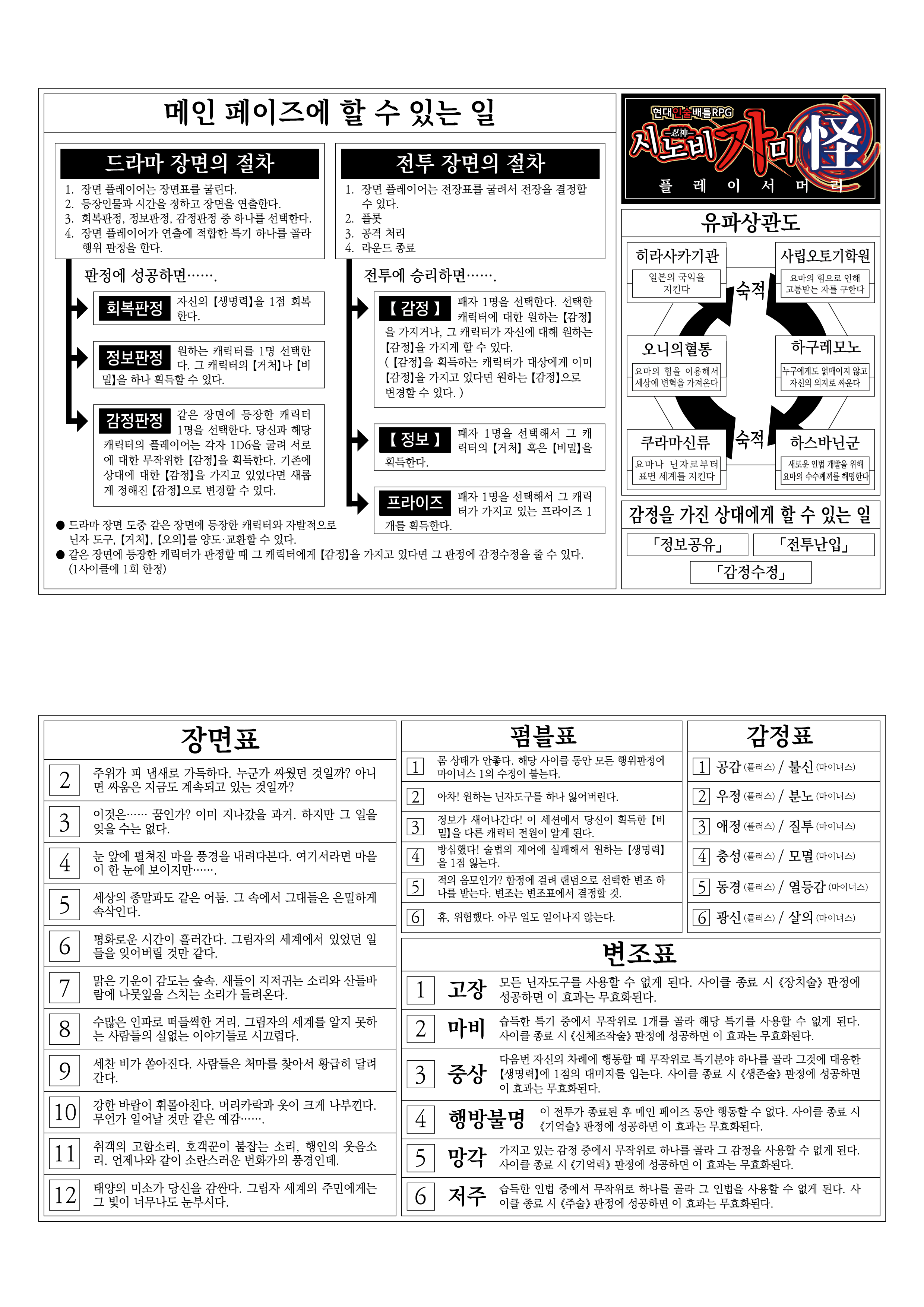 캐릭터 시트와 마찬가지로 기본/괴(怪) 두 가지 버전입니다.